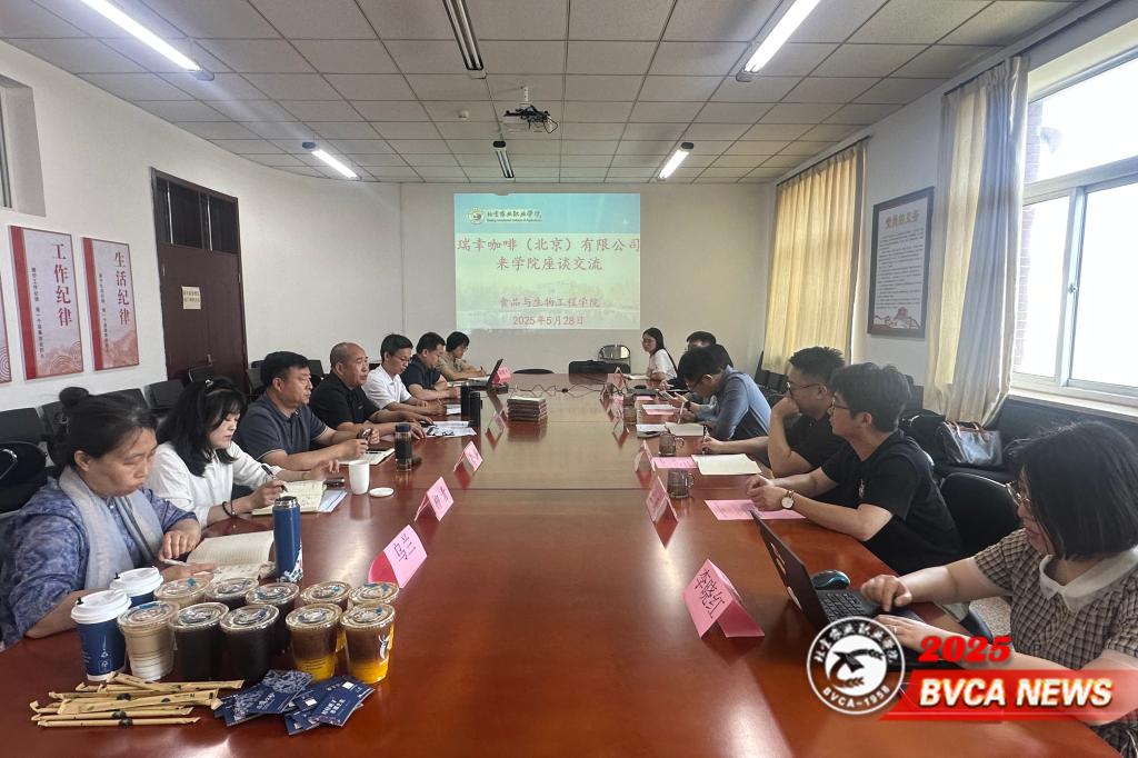 5月28日食品与生物工程学院与瑞幸咖啡(北京)有限公司进行交流座谈。瑞幸咖啡(北京)有限公司总部区域组HR王一晨、北京HR总监周蓓、高级拓展经理占威、HR主管付镐丰以及总部HR管培生张昱芃等负责人参会。我院党总支书记王艳四、副院长杨新建、党总支副书记关伟、系主任以及部分老师参加座谈。