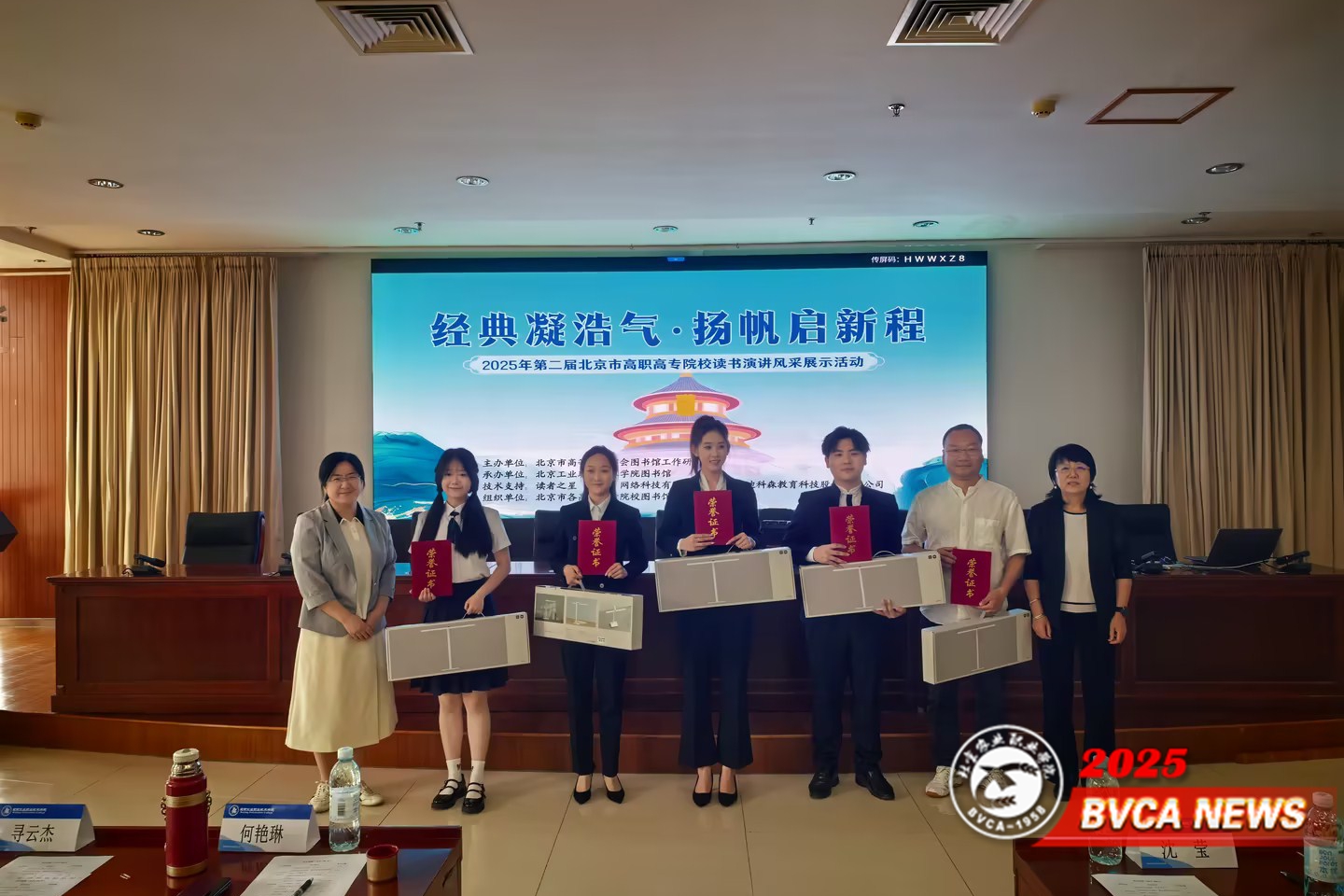 此次活动由北京市高等教育学会图书馆工作研究分会主办,北京工业职业技术学院图书馆承办,奖项设置为一等奖5名,二等奖10名,三等奖6名。图书馆高度重视活动开展,联合共青团委员会、学生工作部以及二级学院,多种途径广泛发动学生参赛,周密组织、积极筹备。组织校内评委对通过校内审核的17位参赛学生的作品进行了三轮评审,张思诺和刘阳两位同学脱颖而出,代表学校参加决赛。赛前经栗广社、张旭,曲爱玲、胡瑶玫四位教师精心指导,卞秋华和王萃二位老师润稿,校内专家赛前观摩指导。张思诺和刘阳分别以“领悟经典文脉的底蕴续写民族品格的光辉——读林海音《城南旧事》有感”和“传承有信知行合一”(参阅著作余秋雨《文化苦旅》)在决赛中进行了读书演讲风采展示并斩获决赛一等奖,其中张思诺综合排名位列第一,充分展现了beat365学子的优秀的文化素养、综合素质和书香风采,体现了学校文化育人、思政育人的突出成果。