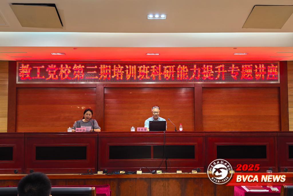6月10日,学校举办“多措并举提升职业院校教师科研能力”专题讲座,本次讲座是教工党校培训班“科研能力”模块的重要一课。讲座由北京科技职业大学二级教授、北京农学院硕士生指导老师、国家自然科学基金项目函审专家、北京市科委评审专家苏东海教授主讲,教工党校第三期培训班学员及感兴趣的教职工参加讲座。