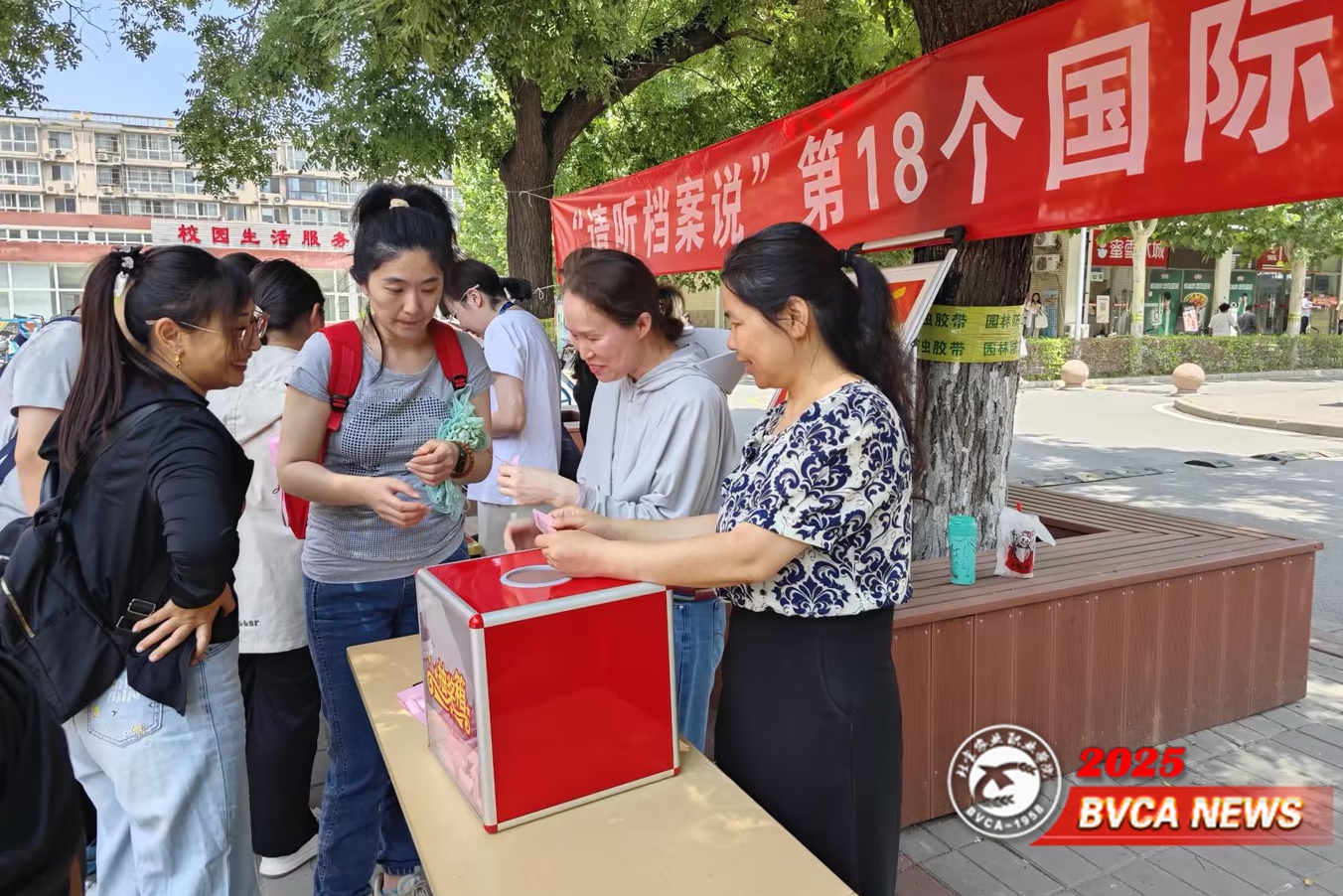 在第18个国际档案日来临之际,图书馆(校史馆、档案馆)精心策划、组织开展了以“请听档案说”为主题的宣传活动。活动旨在深入贯彻落实《北京市档案局关于开展2025年国际档案日系列宣传活动的通知》精神,进一步增强学校师生的档案法治意识,充分展现档案“存史资政育人”的重要价值。党委副书记、院长张德强,党委副书记鲁雷到档案知识答题活动现场指导工作并与师生共同参与知识答题。