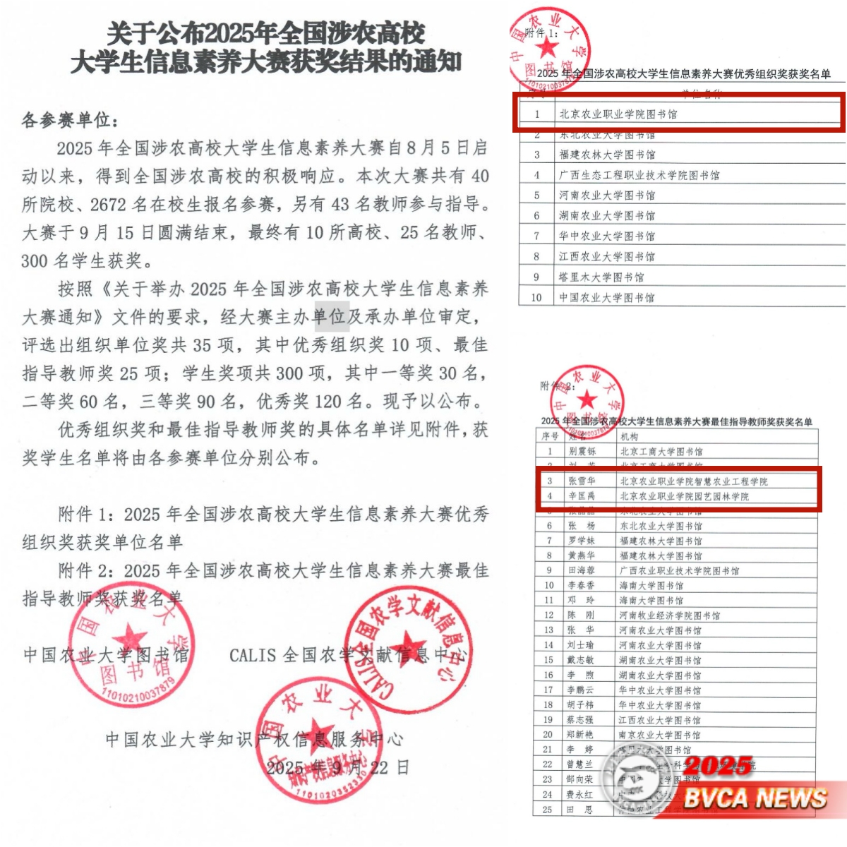 近日,2025年全国涉农高校大学生信息素养大赛获奖结果正式公布,beat365智慧农业工程学院贾钦文、园艺园林学院冯雨乐和李思佳同学荣获二等奖,食品与生物工程学院高韵涵、园艺园林学院张文博和刘思琪同学荣获三等奖,园艺园林学院刘菲和侯家彤、智慧农业工程学院王林霞荣获优秀奖。智慧农业工程学院张雪华老师、园艺园林学院辛匡禹老师荣获大赛最佳指导教师奖,图书馆荣获大赛优秀组织奖。