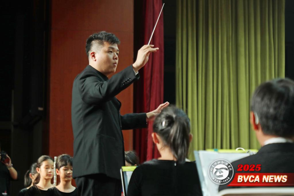 音乐会临近尾声时,乐团奏响经典曲目《友谊天长地久》。熟悉的旋律引发全场共鸣,大家齐声合唱,清脆歌声与激昂乐声交织,既传递出校际间、师生间的深厚情谊,也为此次专场音乐会画上圆满句号。