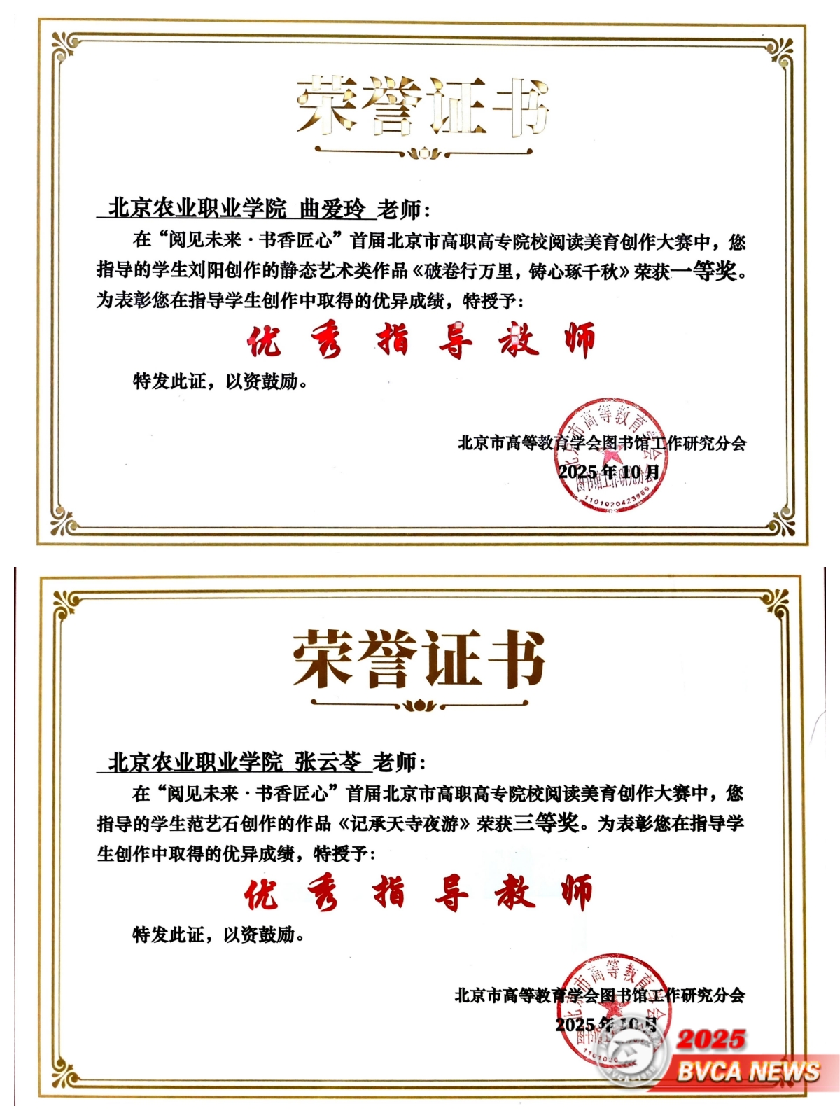 近日,北京市高等教育学会图书馆工作研究分会举办的首届北京市高职高专院校阅读美育创作大赛落幕,学校斩获佳绩。