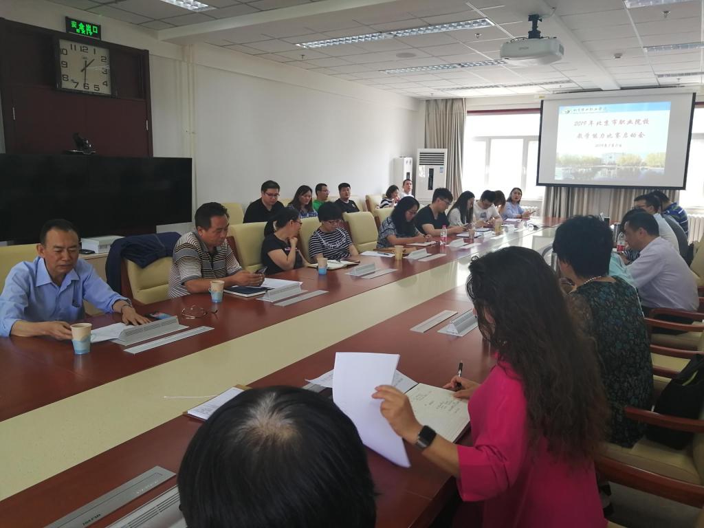 2019年上半年,北京市教育委员会“关于举办2019年北京市职业院校教学能力比赛的通知”下发后,学院就启动了参赛准备工作。会上,教务处处长杨永杰强调,要充分认识教学能力比赛赛事既是对教学团队、教师业务、教学水平的考验,又是打磨团队、树立标杆的重要平台,希望大家全面了解赛事条件与要求,全面了解大赛评奖细则,全面了解大赛的时间节点和特殊事项,完成好赛前准备。