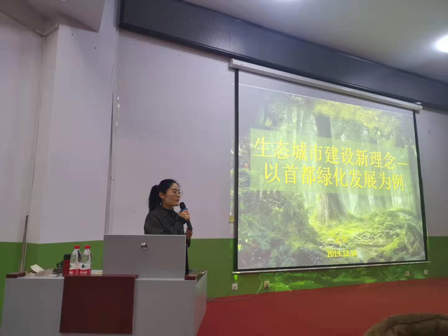 宋阳博士从生态文明思想及其在园林绿化行业的体现形式和高质量发展的具体要求为导论,就首都城市生态建设的绿化形式与兴安职业学院各位老师和同学开展交流互动,就如何持续改善人居环境、促进人与自然和谐共生等问题进行讲解。