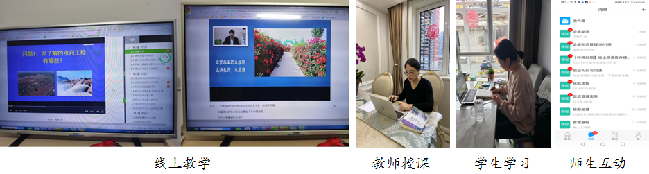 教学工作领导小组首先通过系统后台,随机检查了基础部刘紫薇、园艺系邹原东、食生系马长路、牧医系郭彤和胡平、水建系李凤伟、北苑校区叶辉燕、财金系时文清、现代服务管理系周艳秋、经管系杨建清、清河校区戴华兵、信息系曲爱玲等教师网上建课、资源准备及课堂教学互动情况。随后,范院长前往园艺系、水建系、食生系、信息系、基础部、现代服务管理系实地了解各教学单位首日线上教学工作开展情况。