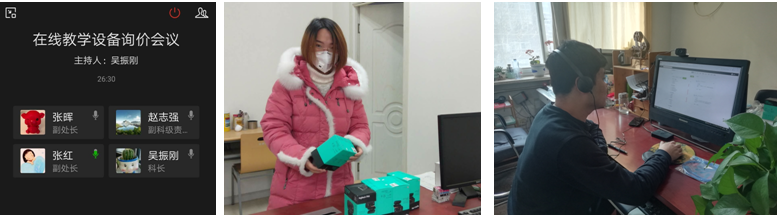 教务处在寒假中积极开展工作,通过在电商平台查询,确定了相关设备型号,和各系部教学秘书及分院教务管理人员协同统计,确定了设备发放的具体名单。2月17日,通过企业微信召开了在线教学设备询价会议,确定了设备供应商。会后,教务处、各系部分院教学管理人员协调沟通,确定了设备收货的具体人员和时间,供应商也积极配合,从外地调拨货物,分两批把设备送到四校区。