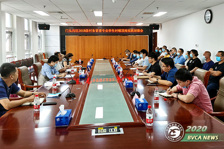 9月9日,门头沟区2018级村务管理专业(方向)学生村镇顶岗实践对接会在门头沟农业农村局召开。会议由门头沟区农工委组宣科干部兼村务18班门头沟区的班主任陈爱军主持。接收学生实习的7个乡镇(潭柘寺镇、永定镇、龙泉镇、妙峰山镇、雁翅镇、清水镇、斋堂镇)的有关负责同志、教务处处长杨永杰参加会议。