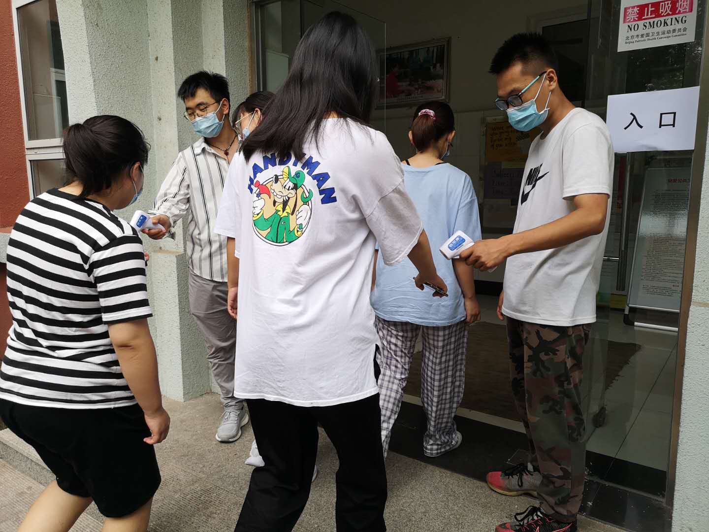 为切实做好学生进教室前体温测量工作,同时保障志愿学生的上课时间,各系部科学安排本系体温测量人员。每个工作日的早上7:30和中午12:30,值班教师和同学就来到指定的楼门前,完成测温工作,并填写记录表。值班教师和同学不辞辛劳,克服了到校时间早、蚊虫叮咬等困难,教学前三周一直采用手持测温枪的方式,从第四周开始采用测温仪的方式开展测量工作。经体温测量值班人员引导,学生进楼门排队测温,井然有序。截止目前,没有体温异常报告。