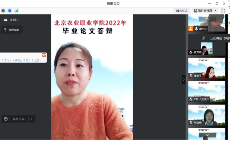 2022届毕业答辩涉及9个教学单位,31个专业,答辩学生2165名。各教学单位积极谋划、科学组织、灵活选用企业微信、腾讯会议等等答辩平台,制定了切实可行的毕业答辩工作方案,并有序开展毕业线上答辩工作。答辩过程中,学生语言表达流畅,就毕业论文进行了阐述,较好地回答了老师提出的问题。村务专业和新型职业农民专业的学生大部分在抗疫一线,但答辩准备充分,得到了评委老师肯定。