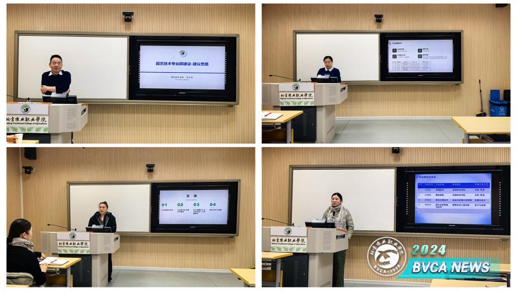 会上,动物医学专业群、食品安全专业群、农文旅融合专业群和园艺技术专业群负责人分别从专业群与社会需求匹配度、专业群服务区域产业情况、专业群建设目标与思路三方面就组群情况进行了汇报。教务处从产业需求调研数据、北京市现代农业产业发展布局结合学校办学定位以及“新双高”文件精神三方面提出了“新双高”专业群的建议组建策略。