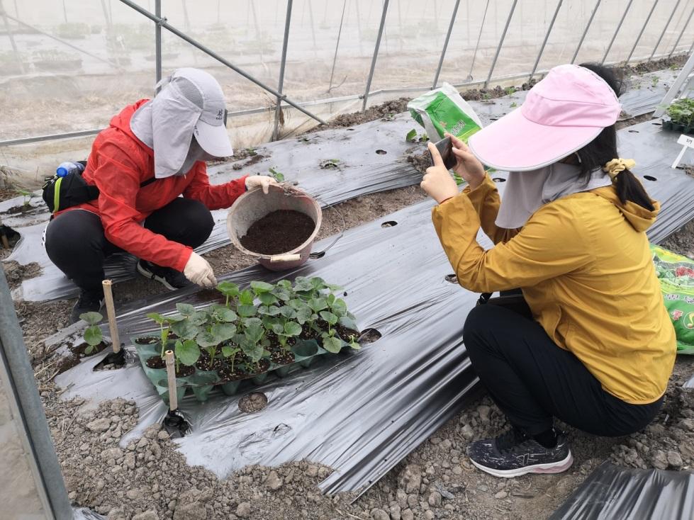 12月上旬海南黄流基地气温较低,早晚温差比较大,天亮的也较晚,太阳出来也在7:30前后。团队成员在科研处处长郝婧,园艺系主任李志强带领下,克服困难,天蒙蒙亮就赶往基地,搬运肥料、苗盘,给工人详细讲解定植注意事项,详细记录定值过程。