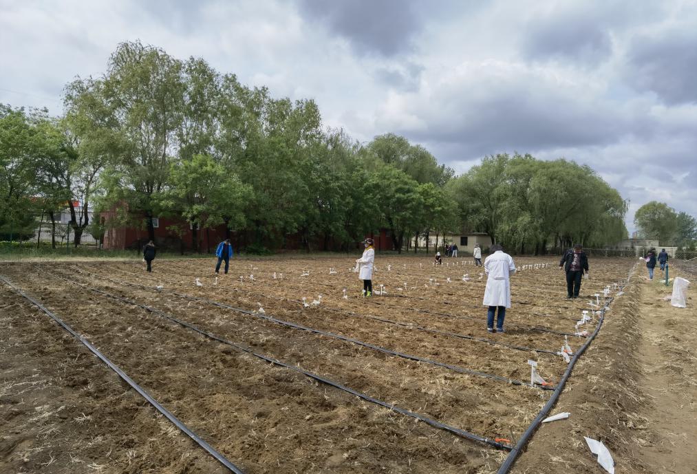 经过实训中心老师协同安排,播种用地通过翻地、旋耕、撒肥,安装喷带等准备,很快达到播种要求。