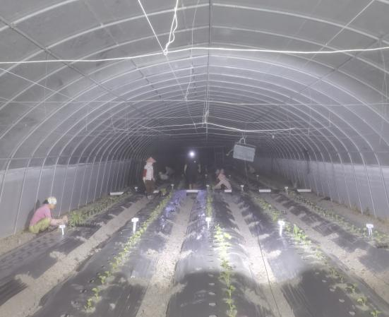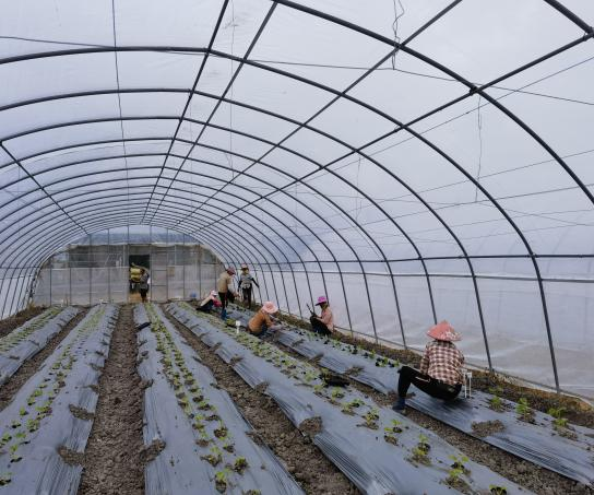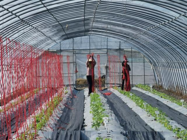 经过三周左右生长期,育苗盘西甜瓜的株高达到定植要求,基地负责人姚慧12月4日前往基地,安排定植工作。因为目前基地气温较高,加之大棚的棚膜效应,棚内温度湿度都相对更高,所以定植工作安排傍晚开始,这样温度降下来以后,更利于西甜瓜定植移栽后缓苗,工作人员也更容易开展工作。此次定植西甜瓜约4200株,共计98个品种。目前瓜苗长势良好,棚内完成栓挂吊绳,做好瓜苗爬蔓准备。