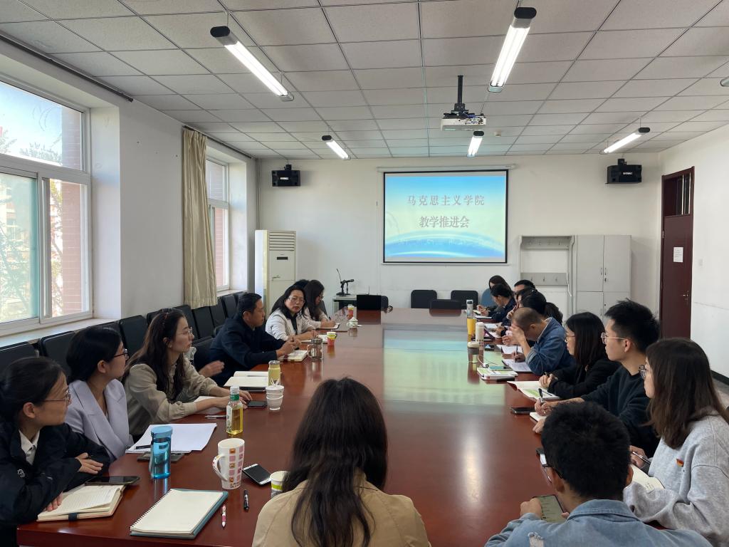2024年10月11日下午,马克思主义学院召开教学工作推进会。学院全体教师及三位外请教师参加,万俊丽院长主持会议。