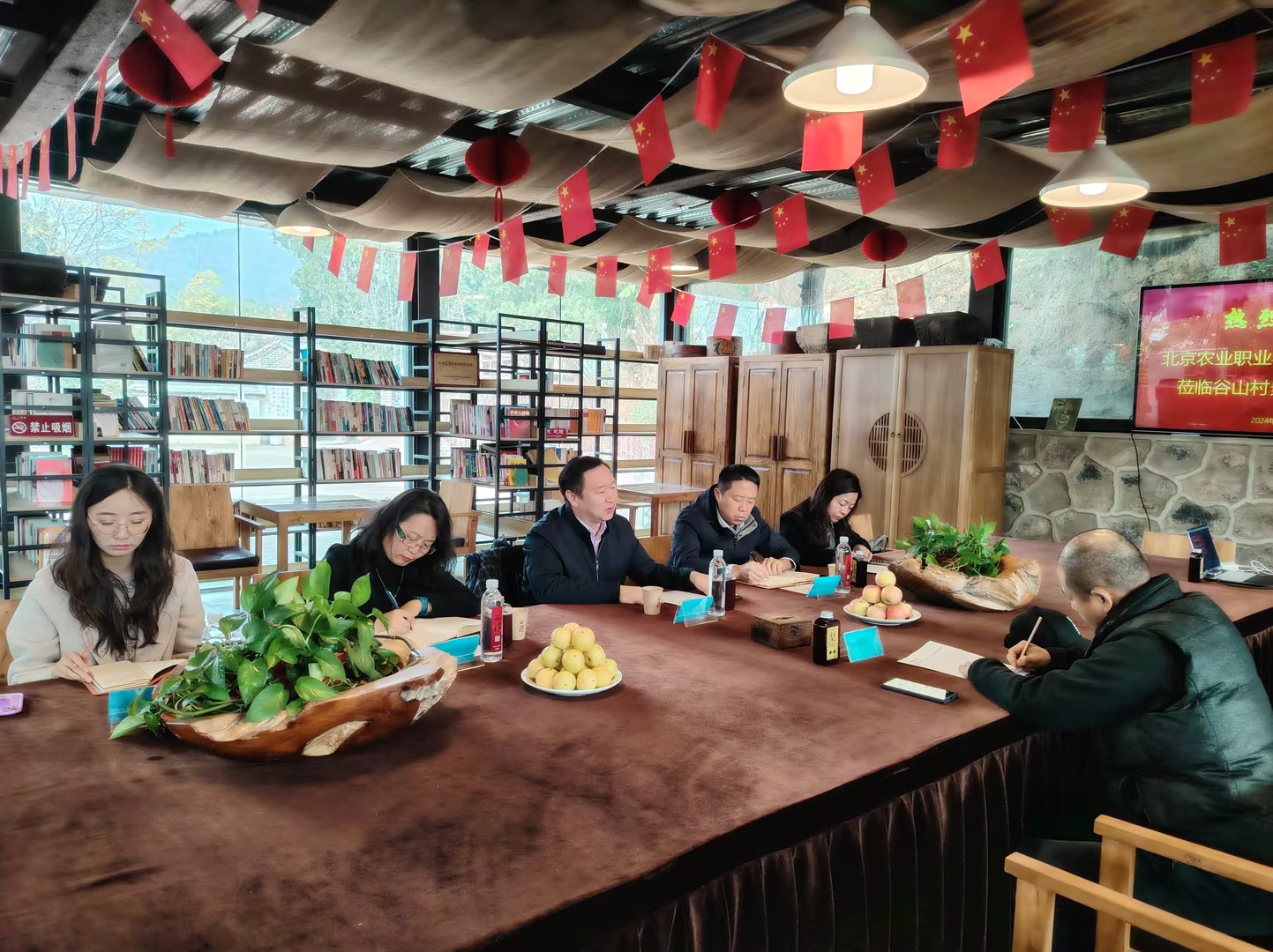 谷山村农耕文化园区董事长梁国春首先对我院一行表示热烈欢迎,并就园区情况做了介绍。之后双方就京白梨的宣传保护、农耕文化课程、教材的共同开发和京西南农耕文化研究中心工作等进行了深入交流。