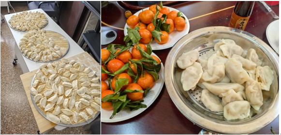 活动现场暖意融融,大家分工协作,揉面、擀皮、包饺子有条不紊。欢声笑语中,形态各异的饺子摆满托盘,大家一边劳作,一边交流回顾过去一年展望新的一年,气氛温馨热烈。