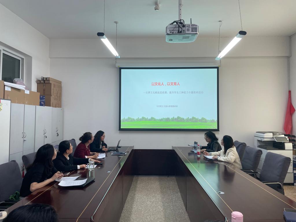 马克思主义学院教研活动围绕“培养提高学生会说、会写、会用三种能力”的主题展开。三个教研部分别以“以赛促研—研讨学情分析 促进师生融合发展”、“中高职思政课一体化背景下的学生三种能力提升”和“以文育人、以文化人—农耕文化赋能思政课,提升学生三种能力”为主题展开教研活动。中国近现代史教研部以教学比赛为背景,从中职和高职两组学生的不同学情出发研讨教学相长的途径方案;思想道德与法治教研部充分发挥集体力量,研讨了中职、高职、贯通三种不同序列学生在思政课一体化的背景下如何分阶段实现三种能力提升。马克思主义基本原理教研部结合京西南农耕文化研究中心,研讨在马克思主义中国化时代化理论成果的教学中如何从农耕文化切入,实现学生三种能力的落地。三组教研活动既考虑现实基础,又进行了前瞻性思考。既有规定动作,又兼具各自特色;