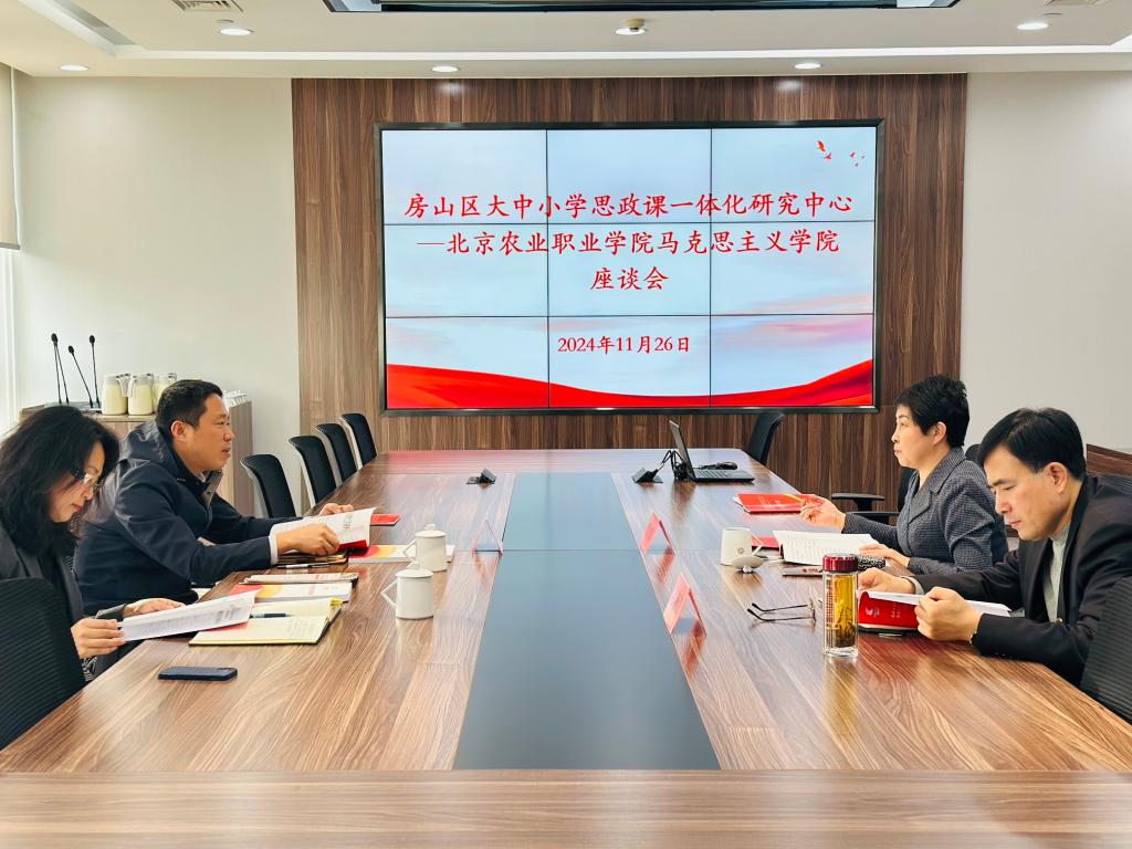 为落实学校思政课座谈会精神,转变作风,推进学校大中小学思政课一体化研究工作,11月26马克思主义学院党总支书记王东启、院长万俊丽到房山区大中小学思政课一体化研究中心调研交流。受到房山区大中小学思政课一体化研究中心副秘书长、区教育党校副校长、区进校党委副书记边红,区教育党校党员教育处主任杜春江的情接待。