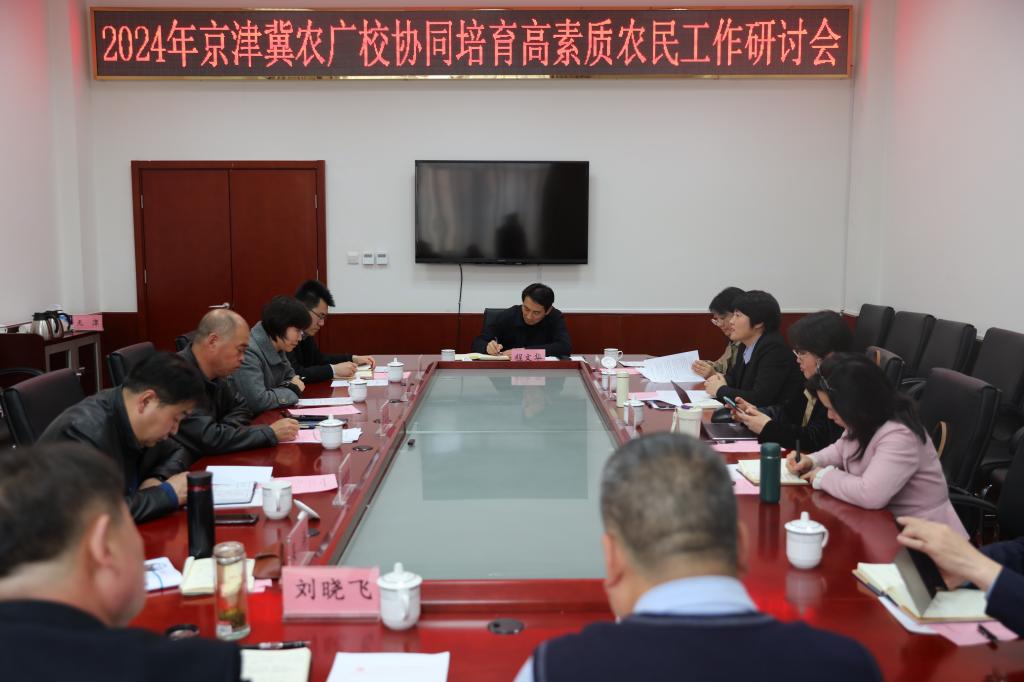 为深入贯彻2024年中央一号文件精神,推进京津冀农广校协同发展,北京市农广校协同天津、河北和北京市各区农广校于4月2日共同召开京津冀农广校协同培育高素质农民工作研讨会。beat365官方网站副院长程文华、北京市农广校校长张新华、天津市农广校校长曹建新、河北省农广校校长马金翠及北京市各区农广校主要领导参加会议。会议由北京市农广校副校长李桂元主持。