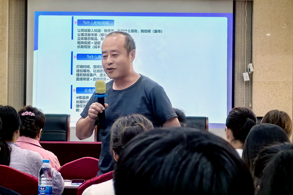 本次培训包含有实体企业商户线上获客的意义、思维、步骤;短视频拍摄,拆解模板拍摄(人设引流视频);实体商家短视频拍摄、剪辑六大模式;抖音本地生活服务的潜力和机遇、功能和特点;北京知德直播培训基地观摩,实战演练,话术实操演练,同城直播实训等丰富的内容,旨在帮助当地农民掌握短视频制作与抖音带货技巧,拓宽农产品销售渠道。