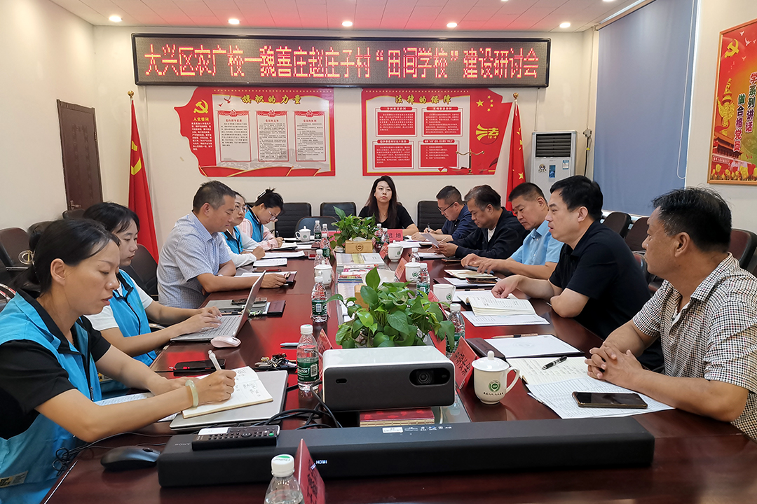 调研组通过田间实地考察、座谈会、访谈等方式,对魏善庄镇赵庄子村的硬件设施、教学内容、师资力量、村民反馈等进行了全面调研。