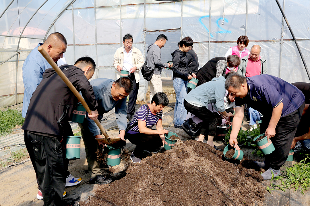 田间课堂上,学员走进实践大棚体验种植苤蓝并观摩了“南果北种”技术在合作社的成熟应用。