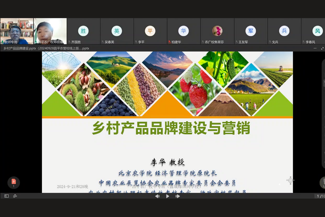 9月29日,昌平区农广校邀请了北京农学院经济管理学院原院长,北京市休闲农业、优农品牌、农业标准化、乡村振兴专家团成员李华教授,以“乡村产品品牌建设与营销”为主题,为昌平区19个镇街农村两委干部举办了“空中课堂”专家公开课。