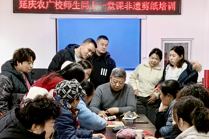 12月18日至19日,延庆区农广校在旧县镇三里庄文艺中专班、井庄镇窑湾旅游服务中专班,分批次开展师生同上一堂课——蔚县非遗剪纸培训活动。活动邀请蔚县剪纸非遗代表性传承人、联合国教科文组织授予的“民间工艺美术家”高佃亮老师现场授课。