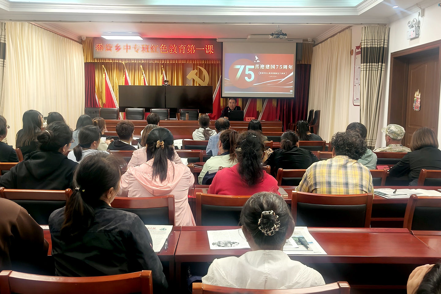 9月14日,香营乡旅游中专班开班仪式暨红色教育第一课在香营乡文体中心拉开帷幕。来自香营乡、区教委、延庆农业广播电视学校的相关领导出席,旅游服务的新学员及家政、计算机中专班老学员共50余人参加了此次活动。