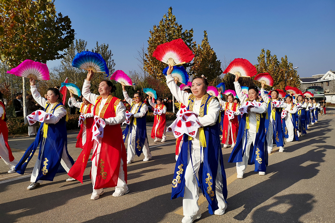活动第一站井庄镇窑湾村,学员们展示了旧县传统大秧歌,以积极向上的精神风貌热情弘扬中国民间文化。之后学员们参观了村中的文化作品陈列室、文化活动室和村史馆,了解村中产业和文化建设情况。
