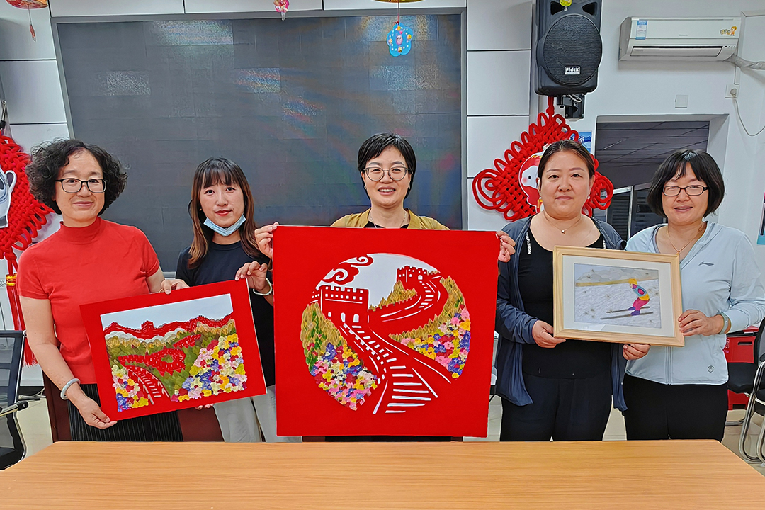 活动历时近3个月,以更好的宣传植物拼贴画技艺和展示职业学院的教学成果为目的。第一阶段:2024年9月5日至10月8日,专任教师带领学员完成参展植物拼贴画作品的创作,即《美丽家园》《罗锅长城》《冬奥》等。作品《爱家园护长城》以习近平总书记给石峡村百姓回信中鼓励村民像保护家园一样保护长城为创作灵感,以植物为原料,结合剪纸,描绘了石峡村的罗锅,呈现了一幅新农村建设的美丽景象。