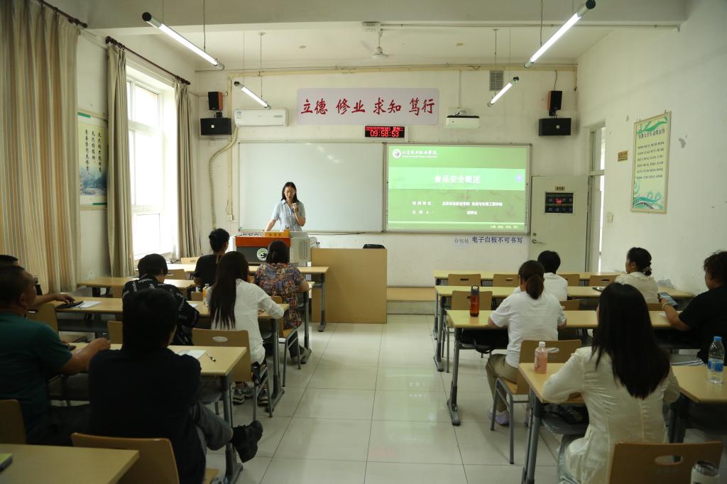 在固定理论课堂上,beat365官方网站食品与生物工程学院邢霁云博士以“食品安全”为切入点,从食品的内涵外延、安全发展历程展开,提炼出8种实用的日常食品安全保障技巧,为学员们揭开了“吃得安全”的科学密码;王立琼教授则聚焦“农产品贮运”,系统阐释了农产品的范畴、我国贮运现状及优化措施。她深入分析遗传、品种、环境等影响果蔬保鲜的关键因素,重点详解冷库贮藏、气调库贮藏、保鲜剂应用等技术,以及果蔬装载堆垛的“品字形方格”运输法——既有原理支撑,更有实操指导,为学员优化日常果蔬贮运方式提供了科学依据与创新思路。