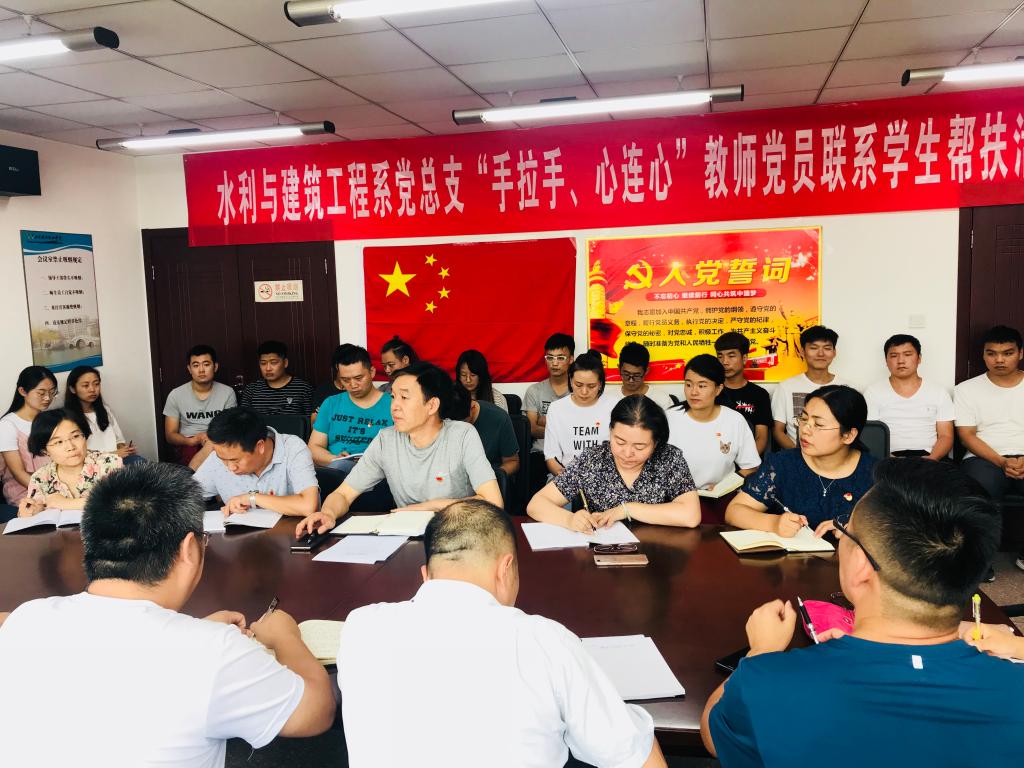 2018年7月3日,水利与建筑工程系党总支召开教师党员与困难学生帮扶活动,活动由水利与建筑工程系党总支书记高啟华同志主持,水建系党总支23名教师党员与25名困难学生参加了活动。