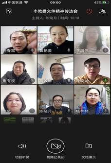 3月8日,水建系通过企业微信召开线上视频会议,布置近期工作。会议由系副主任焦有权主持,系党总支书记高啟华和各专业主任参加会议。