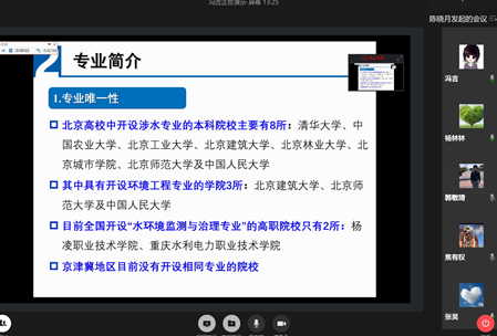 首先,焦有权同志向在场的女教师们送上节日的祝福,传达了并解读了《北京市教育委员会关于公布2020年新增高等职业教育专业名单的通知》文件精神及范院长对此文件的批复。今年水建系新申请的水环境监测与治理专业开始招生,水利专业的专任教师冯吉对新专业进行了整体介绍,从新专业的建设、发展前景、核心课程和就业范围等方面进行了展示。其次,水利专业主任进行表态发言:一定积极配合学院和系部的招生工作,全力以赴完成好招生任务。再次,教学秘书对本学期期初教学检查工作情况通报,全系任课教师上交的教学材料都很规范、齐全。