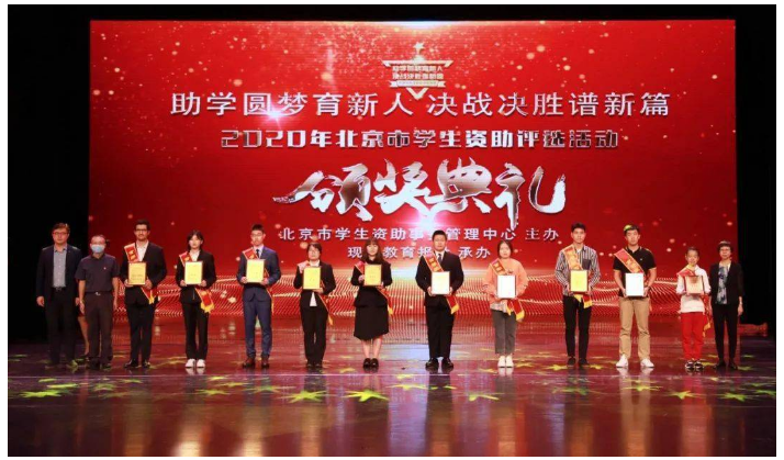 此次活动由北京市学生资助事务管理中心主办、现代教育报社承办。北京市教委、市财政局、市农业农村局和市民政局等行政单位领导、各级各类学校、相关社会团体及相关金融服务企业的领导和嘉宾近三百人,出席了当天的颁奖典礼。