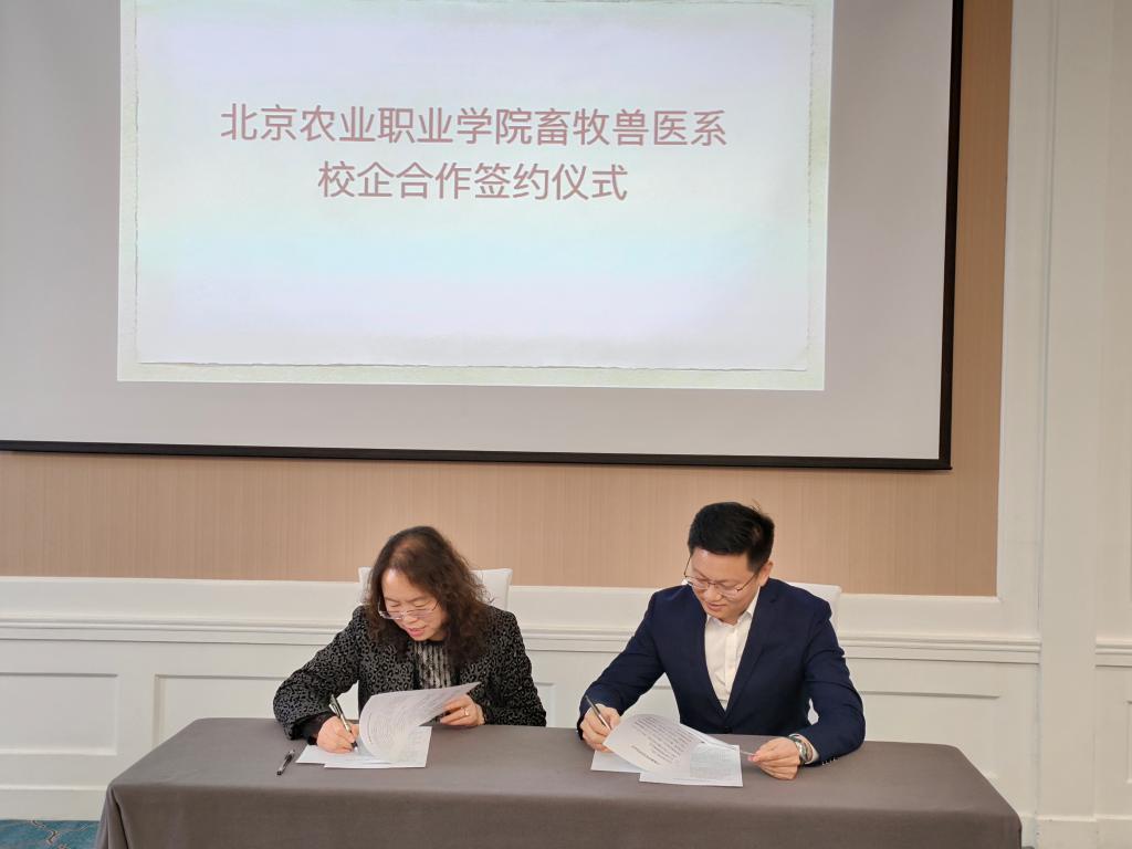 4月26日,畜牧兽医系与全心全意动物医院有限责任公司签订产教融合校企合作协议书。畜牧兽医系主任赵庶吏、全心全意动物医院院长张磊及部分教师出席签约仪式。