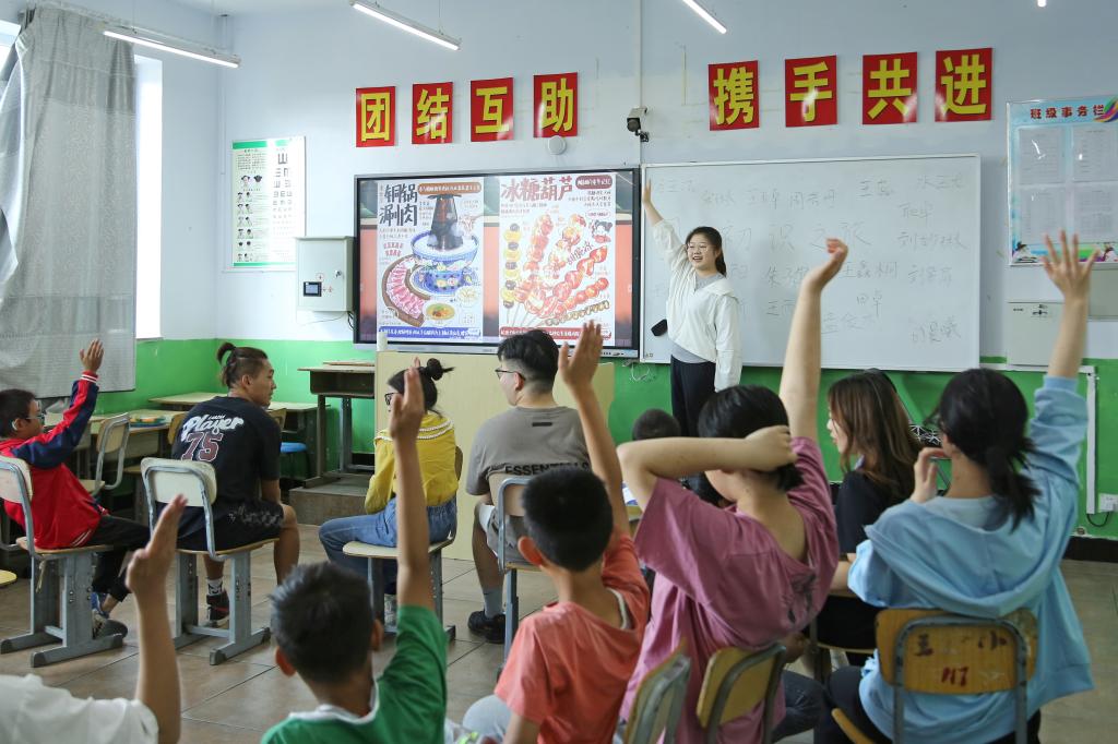 在支教团要离开的最后一节团建课上,老师和学生们在一起做了有奖知识问答,通过游戏的方式巩固这些天学到的知识,孩子们踊跃回答,正确程度出乎大家的意料。因为孩子们支教期间的优异表现,支教团为孩子们颁发了体坛风云奖、能工巧匠奖、眼镜博士奖、深藏不漏奖等有趣的奖项,并根据孩子们的特点和喜好,赠与他们篮球、飞盘、彩笔、粘土、飞船模型等奖品。最终,支教团将上课的精彩照片打印出来送给大家,看着这些天经历过的精彩瞬间,伴随着《虫儿飞》的吉他音乐,老师和学生都在默默流泪。
