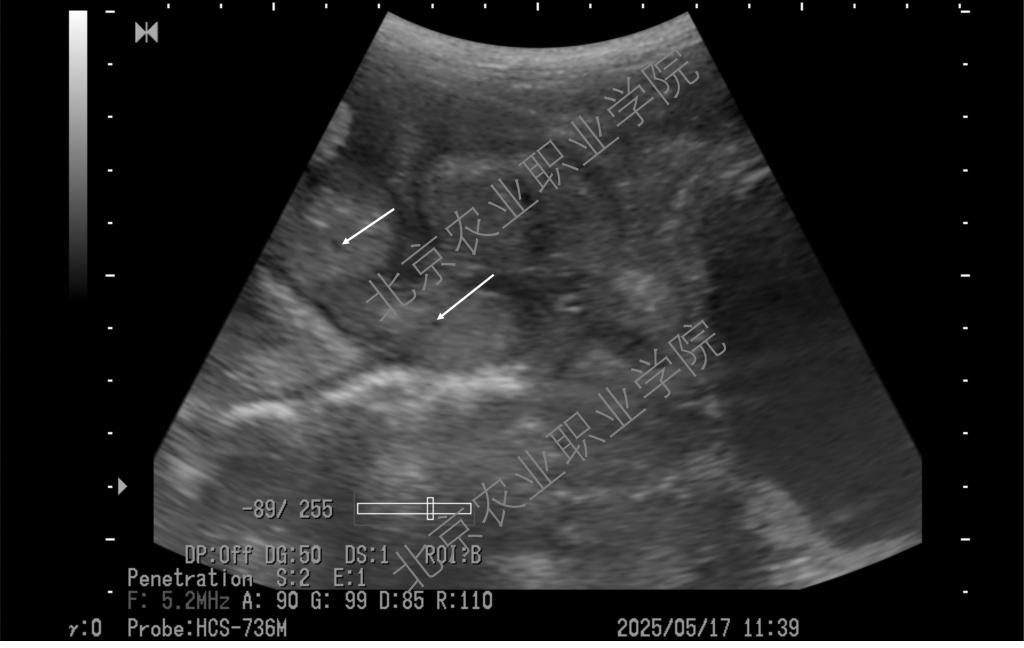 近年来,我院姜晨副教授领衔的兽医超声技术团队积极推广超声影像技术在多种动物临床中的应用,并取得一系列技术成果。团队持续探索母猪孕早期超声检查的边界,目前最早可在排卵后第9天确认是否怀孕(可见直径约1mm的卵囊液)。此超声检查技术已达到国际前沿水平,为打开母猪孕初相关的科学研究之门提供了一把金钥匙。