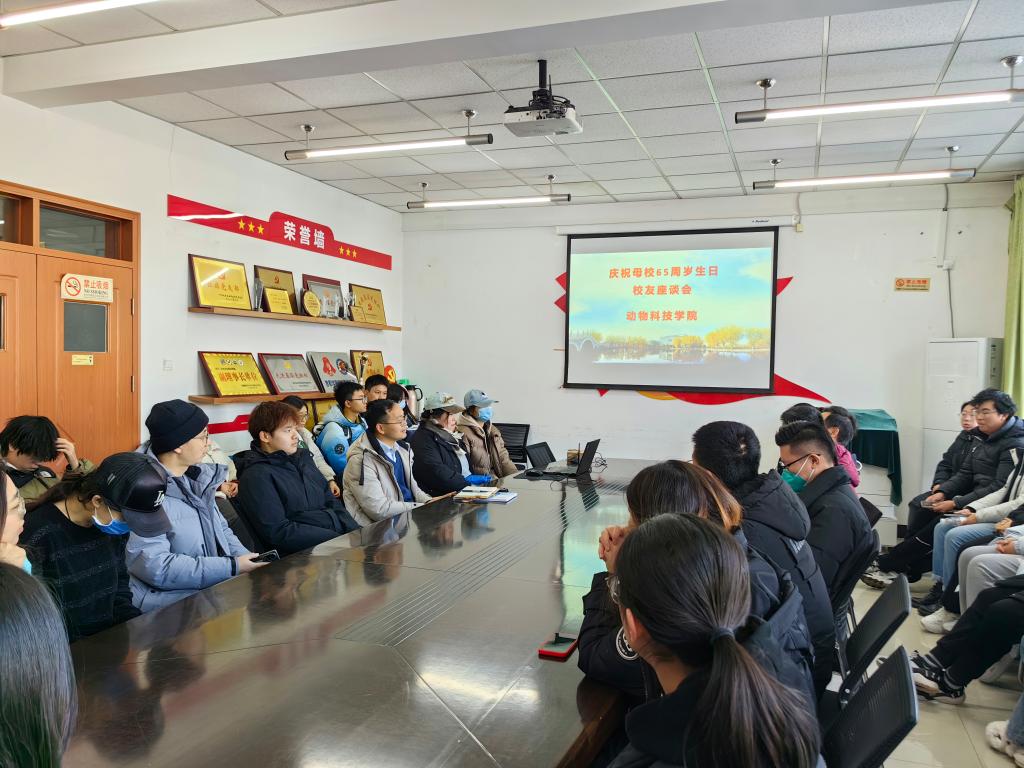 12月23日,动物科技学院在牧医楼206会议室举办庆祝母校65周岁生日毕业生座谈会,邀请返校部分毕业生代表与在校生举行座谈,分享个人成长经验,帮助学弟学妹更好更快地成长成才。