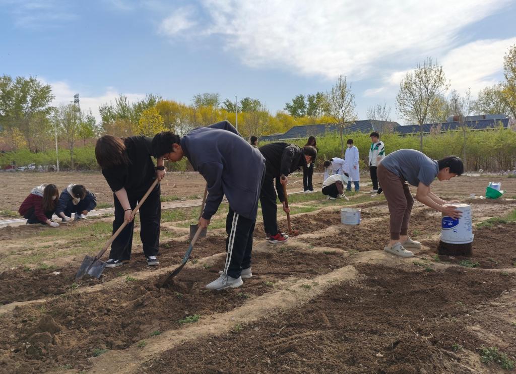 师生们分组协作,共同描绘着一幅生动的农耕实践画卷。翻土整地、播撒种子、灌溉农地,亲手种下香菜、茴香、小白菜、小葱、玉米等农作物。师生们在田间地头挥洒汗水、学习农耕知识,体验劳动之美,感悟到耕读文化中“以耕养身,以读修心”的深厚内涵。