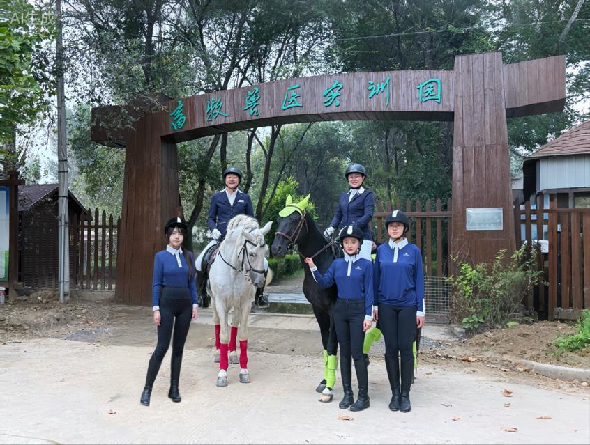 随后,付静涛老师驾驭着白马"Morrow",身姿挺拔,尽显从容气度。白欣洁老师则策骑黑马"Kalisi",英姿飒爽,展现了娴熟的马术。