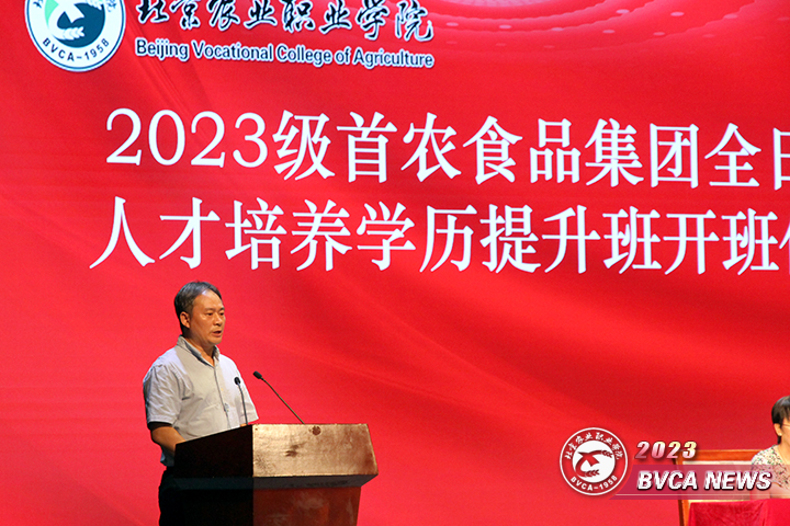 9月1日下午,学院和北京首农食品集团有限公司共同举办的全日制人才培养首届“首农食品集团在岗职工高职班”开班仪式在清河校区顺利举行。学院领导王晓华,北京首农食品集团有限公司人力资源部副部长吕楠,清河校区党总支书记王新华,首农食品集团北京三元食品股份有限公司人力总监郭炎炎,清河校区院长叶克等相关领导出席仪式,学院相关系、校区、处室负责人及“首农班”各班班主任、全体2023级“首农班”学生参加。开办仪式由教务处处长杨永杰主持。