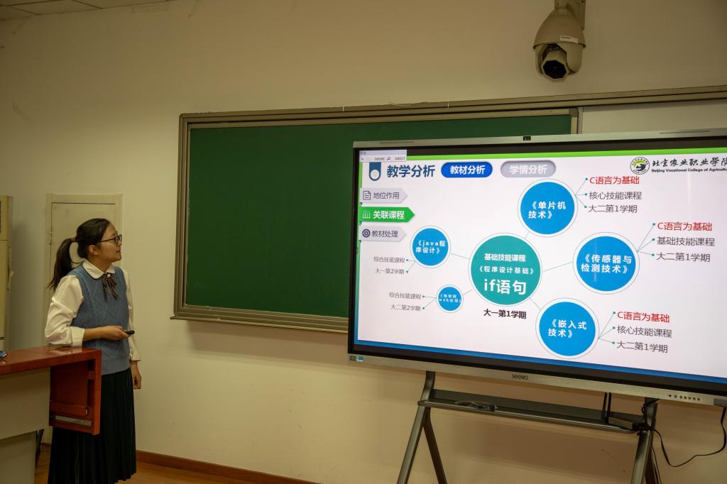 教学能力比赛分为两个环节:说课和讲课。在说课环节,刘茵老师用5分钟时间从教材分析、学情分析、教学目标及重难点、教学策略、教学设计及实施、教学效果及反思等几大方面,简短而又丰富的讲解了《选择结构-单分支if语句》的整体课程实施。在讲课环节,刘茵老师通过"复习旧知、引入主题-->创设情景、构建新知-->合作探究、学以致用-->小组讨论、创想应用-->评价总结、课后作业"几大环节的层层递进讲课,解决教学重点,突破教学难点,同时将"认真仔细,工匠精神"、"树立正确价值观"等思政点融入课堂。