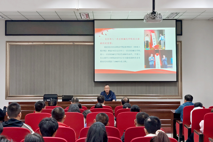 首先,李福田老师简要介绍了清河校区(机电工程学院)前身——北京市八一农业机械化学校成立前的历史背景:即毛主席提出“农业的根本出路在于机械化”著名论断的背景;中国人民志愿军捐款支援国家农业建设及捐款建学校的背景;为纪念志愿军捐款,在校名前冠以“八一”两字及学校筹建的背景;八一农机校自成立到现如今的beat365官方网站清河校区,64年各阶段的发展历程。