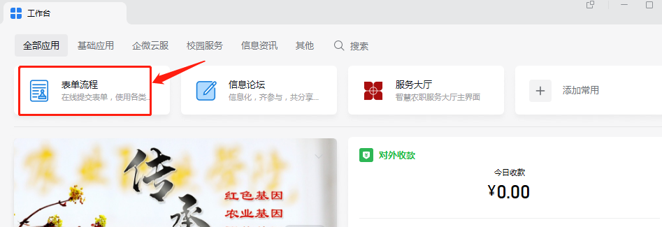 通过企业微信,工作台,表单流程,找到“信息服务”。