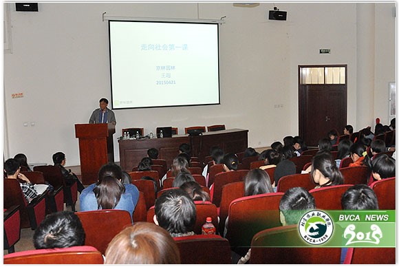 4月21日下午,北京京林园林集团董事长王超受邀为园艺系师生做讲座。园艺系专业主任李志强、专业教师、学办工作人员、在校学生近200人聆听了讲座。此次讲座的题目是“走向社会第一课”。讲座以一段视频开始,由视频讲到如何超越自我,完成自以为不可能的事,来实现人生目标。王超董事长主要从“大学学什么”“读书的作用”“做成一件事的基本条件”“自我管理的三因素”“学生具备的三‘心’二‘力’”“公司的概念”“公司用人之道”“团队精神”等等,来解答学生在校学习、工作、人生当中可能会遇到的问题和困惑。主讲人充分和学生互动,由求生、求学和求发展的排序来引导学生思考如何定位人生,讲解的内容深入浅出,如讲到读书的作用提到稻盛和夫的名言“人活着的目的就是要今天比昨天做的好一点,明天比今天好一点,或者说,是带着更美好的灵魂死去。”在讲解中主讲人不时结合自己身边的案例加以发挥,语言生动有趣,整个过程师生获益良多。京林园林集团成立于2000年,我院园艺系于2004年与该公司建立合作关系,目前该公司已累计接收近30名园艺系各届毕业生,有很多学生已经成为该公司的技术骨干。同时,该公司每年接待园艺系园林专业师生开展综合实训,为学生的实践技能锻炼创造了良好的条件。