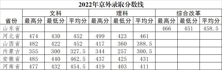 2022年京外录取分数线