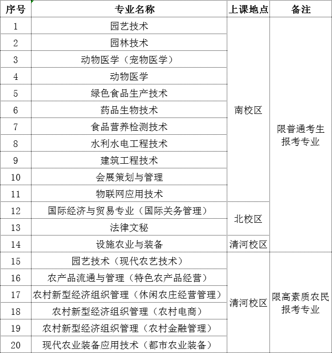 序号15-20为高素质农民报考专业。